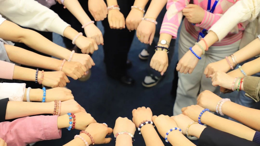 大家充分发挥创意,精心挑选珠子,搭配色彩,将一颗颗散珠串联成饱含心意与个性的饰品。制作过程中,大家相互交流经验、分享创意,欢声笑语不断,气氛温馨融洽。